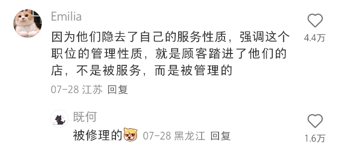由此可见,大众讨厌的并不是主张个性的主理人,而是那些忘记服务本质的从业者。小众创新固然可贵,但如果随之而来的是“爹味”管理和规训,那就没有消费者愿意陪玩这场“主理人游戏”。毕竟没人想从公司下班,再倒贴去主理人店铺“上班”。