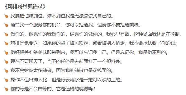 高傲的主理人在挨骂,另一边,接地气的主理人却火出圈了。国庆前夕,景德镇一位卖鸡排的摊主靠超高的情商、良好的服务态度走红全国。虽然鸡排只卖6元,但这位“鸡排哥”对如何炸好鸡排很有见解,受到顾客称赞:“虽然没有门店,但这何尝不是一位主理人?”